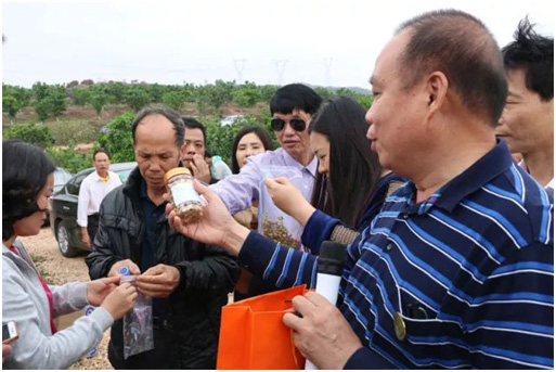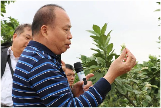 ![]() 如今正是化州橘红开花的时节,就广大橘农们忧愁如何为橘红树疏花保果,如何运用先进的施料管理橘红树,如何才能确保每一颗橘红树产量大,质量优时,由市科工商务局和市化橘红产业协会联合举办化橘红疏花及保花保果实用技术培训班。 3月18日上午,培训班在江湖镇天橘化橘红种植基地举行,正是为橘农们送去化橘红管理技术的“及时雨”。 ![]() ![]() ![]() ![]() 培训会上,化州市正源堂化橘红实业有限公司董事长李海波同志,讲解化橘红花期如何疏花的管理技术,在花期的适当时期疏花,还有选择怎样的花枝进行疏花较为适合,才能让疏花管理达到保花既保果的效果。今年橘红开花十分繁盛预示着橘红将又迎来一丰收年,因此花期管理就显得尤为重要了。 ![]() ![]() ![]() 另外,也引入了奇茵天然芸苔素介绍,主要应用于化橘红保花保果技术推广。 ![]() ![]() 还有,深圳奥德雷斯生物科技有限公司的微生物️机菌肥:富含有机质、高蛋白、富含钙、镁、硫、硅、硼、锌、锰等,17种中微量元素及活性酶类,肥效长、养分足等。经过两年的试验使用,如在(广东美华万亩基地 、广东大合基地、天橘基地、香雪制药橘红基地 )低涩优质化橘红获得重大突破。 ![]() ![]() 橘红花开,蜂蝶自来。当我们到达基地一打开车门时,迎面扑来的是一阵阵泌人心扉的花香,深呼吸一下,感觉神旷神怡。最吸引我们的当然是来自这一片无际花海的精华——橘红蜂蜜。 ![]() ![]() ![]() ![]() ![]() ![]() 据统计,我市现有近30万农民从事化橘红种植加工,种植面积已达8万多亩,仅化橘红一项每年就为农民增加收入近千万元。全市以化橘红为主要原料的大小加工企业65家,其中药字号4家,食字号10家,生产的化橘红、化州橘红系列产品20多种,产品种类已从原料加工发展到药品、保健品、美容品、干果、橘红片、橘红花、橘红茶、工艺品等八大类。全市化橘红加工产品产值超5.3亿元,年加工鲜果能力2000吨。 ![]() ![]() |